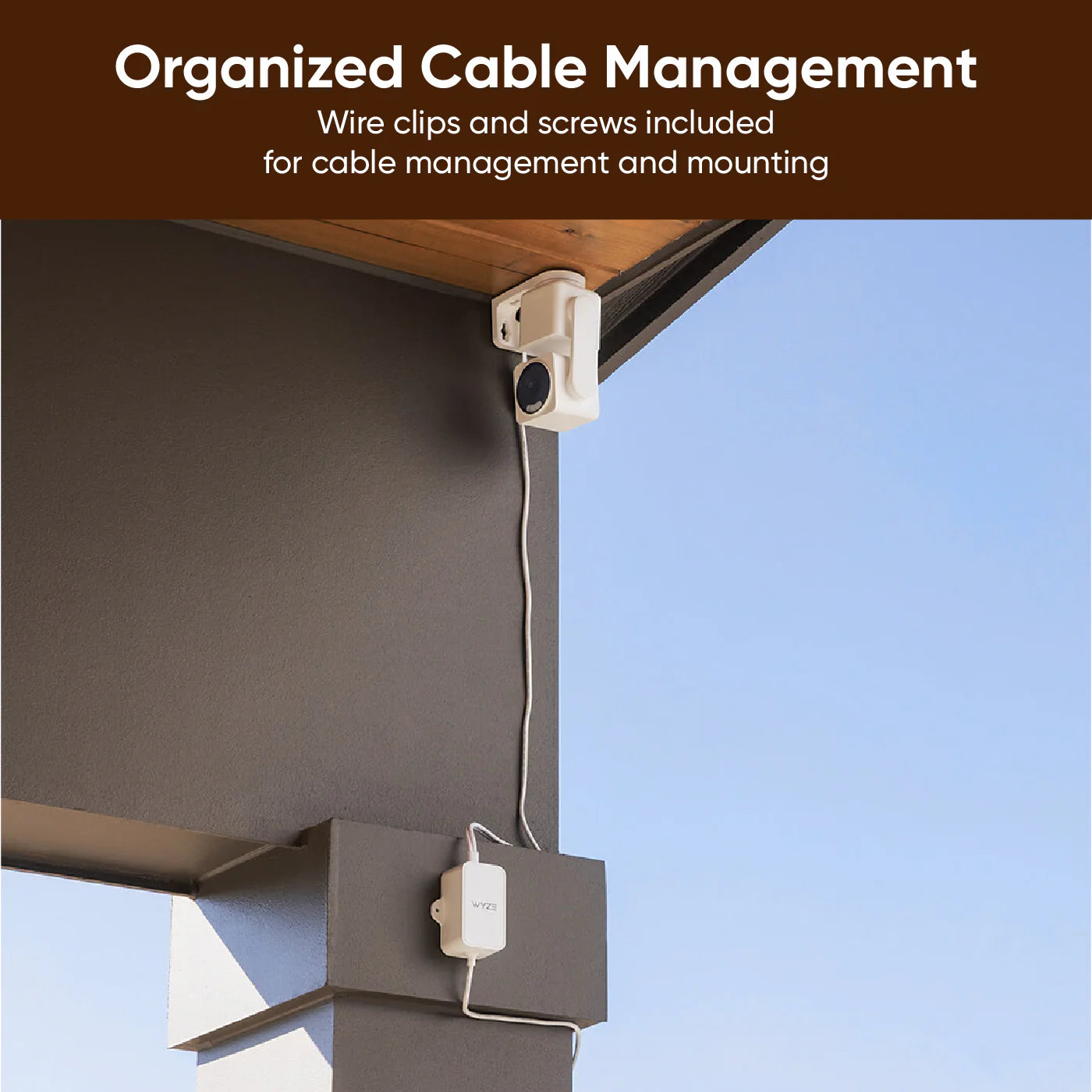 The #1 best-selling 360° pan & 180° tilt Wyze camera is now back with 4K Ultra HD Quality. Paired with our Wyze Universal Outdoor Adapter which is IP67 weather-resistant, so you can safely use your Wyze Pan v4 camera without worrying about the weather.
