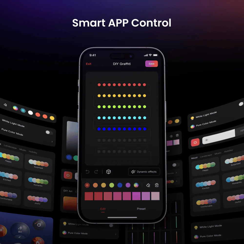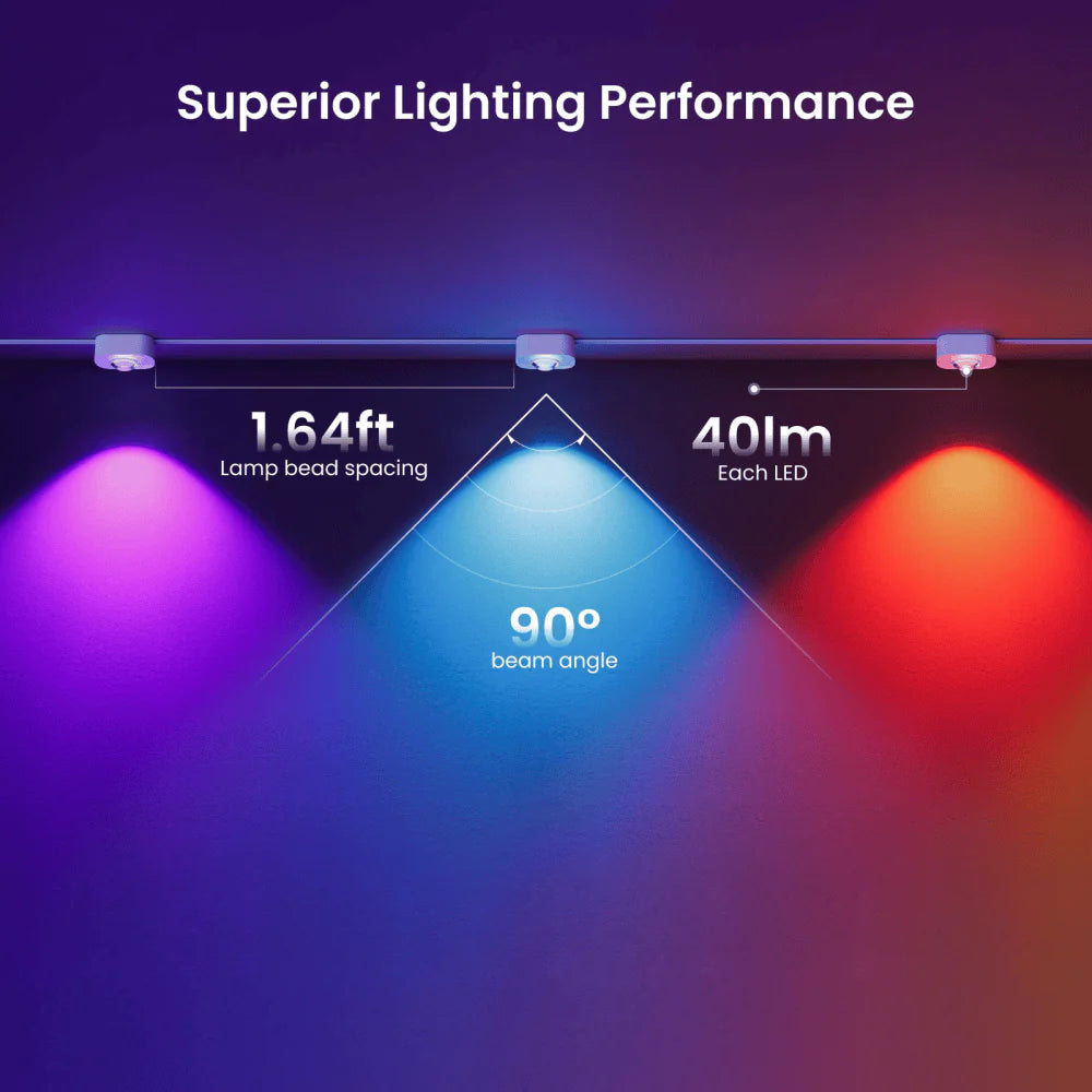 100ft of RGBIC LED permanent outdoor lights that offer 16 million colors and high brightness. 2 LEDs per meter and 40 lm per LED. Easily switch from vibrant party lights to cozy daily decorations with the 3000K warm white mode. Control it all from a single Yeelight app.